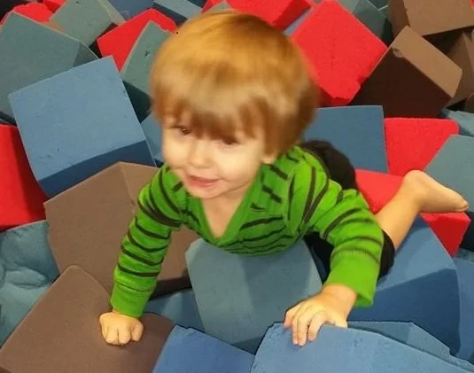 The little ones are then allowed a few more moments to play, but we are instructed to 'Move them along from one activity to the next so they can master all the different movements!" 0_o He can do every activity the set up, but what he really wants to do is hurl himself into the giant foam pit over and over. I'm okay with this and bury myself in foam cubes, then sit back and watch. It's a foot and a half climb to get out each time. The kids got incredibly upper body strength and I don't think crawling under foam arches is crucial to his development. Another mother eventually follows her daughter into the pit and hunkers down with me. Her daughter is chewing one of the beanbag animals we're supposed to be teaching the children to throw through hoops. She gets it.